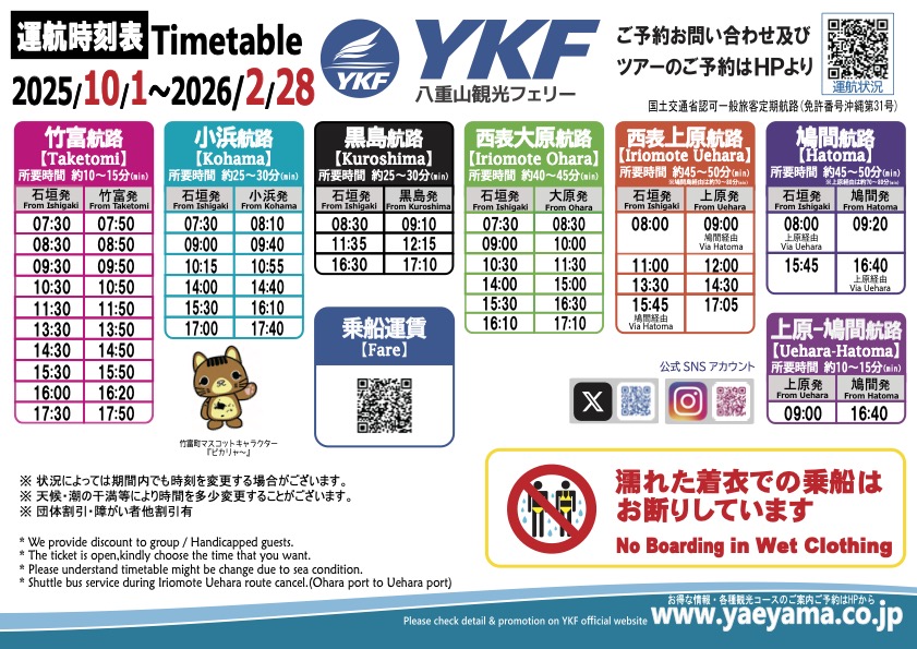 石垣島から船のご案内2025年10月1日から2026年2月28日